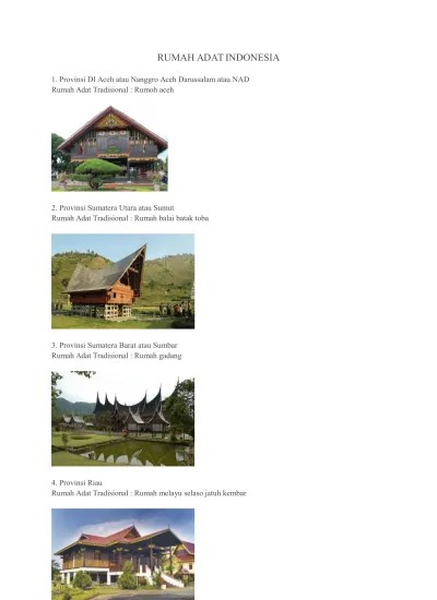 34 nama rumah adat tradisional di indonesia beserta gambarnya ! Rumah adat 34 provinsi di indonesia, rumah adat indonesia lengkap beserta gambar dan penjelasannya, mulai rumah adat aceh, jawa, kalimantan, . Yuk intip keunikan gambar rumah joglo beserta dekorasinya yang . Provinsi sumatera barat atau sumbar. Berdiri kokoh dan megah dan masih banyak ditemui di samosir.